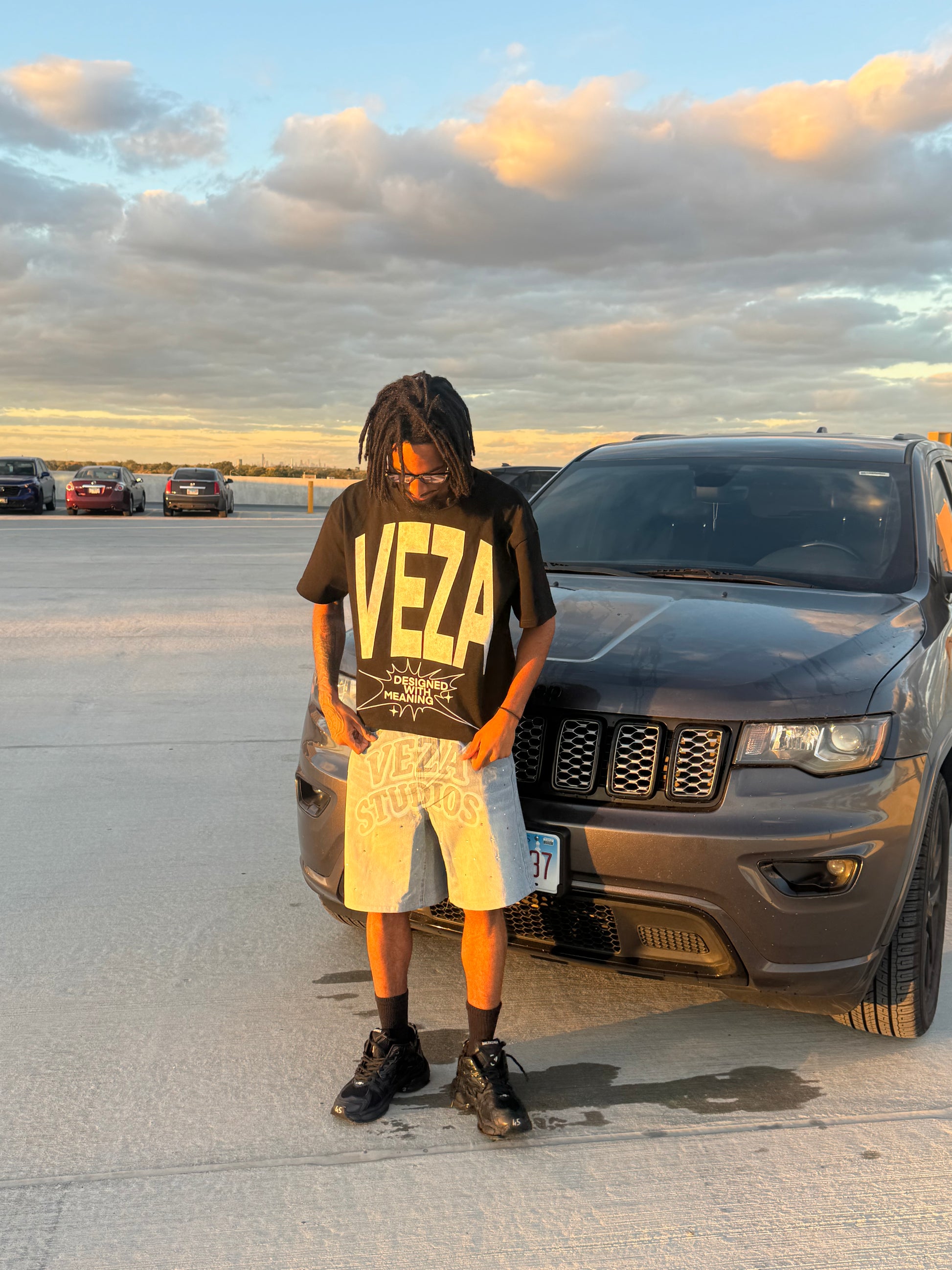 • Screen-printed “VEZA” front & “Worn With Purpose” back graphic